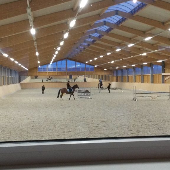 Neue Reithalle 80 m x 25 m Die neue Reithalle (80 m x 25 m) steht Ihnen seit Sommer 2016 zur Verfügung. Ein gemütliches Reiterstübchen mit großer Terrasse lädt zum Verweilen ein.